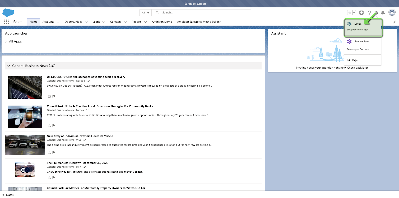2. Navigate to Setup via the button in the upper-left corner of the page.